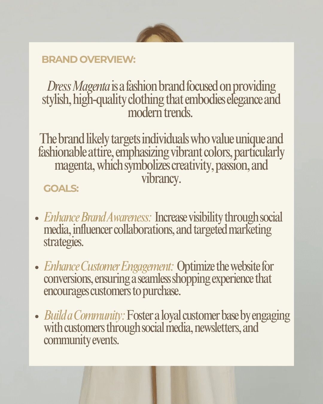 MAGENTA is a contemporary fashion brand centered on elegant, feminine silhouettes and timeless wardrobe staples. Astrid Creatives led the brand’s social media direction to elevate its visual presence, refine brand perception, and position MAGENTA as a polished yet modern fashion label. Objective Increase brand awareness, strengthen Instagram engagement, and develop a cohesive visual identity aligned with MAGENTA’s refined and sophisticated aesthetic. What We Did • Developed a strategic monthly content plan aligned with product drops and campaigns • Defined and elevated the brand’s creative direction and visual storytelling • Designed cohesive, branded graphics for promotional and lifestyle content • Created product-focused posts highlighting texture, detail, and styling versatility • Wrote captions aligned with the brand’s elegant and confident tone • Managed content scheduling and monitored engagement insights Results • Achieved a visually cohesive and premium Instagram feed • Elevated overall brand perception and aesthetic consistency • Improved product storytelling through curated styling content • Strengthened brand positioning within the modern fashion space